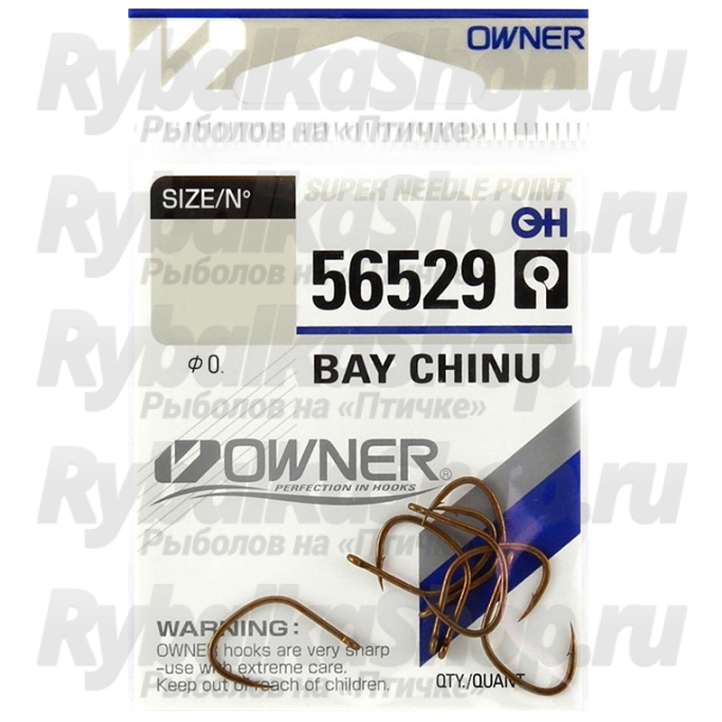 Owner Bay Chinu 56529 – серия мощных и прочных крючков для ловли сильной рыбы, изготовленных из толстой проволоки. Крючки Owner 56529 имеют широкий полукруглый загиб типа «ракушка», кованый поддев, загнутое в сторону цевья острейшее жало, короткое цевье с колечком для привязывания и защитное покрытие бронзового цвета. Owner Bay Chinu отлично подходят для использования в оснастках и монтажах для ловли крупной рыбы на объемные насадки. Размеры крючков внутри серии Bay Chinu изменяются от №6 до №1 по международной классификации. Острейшее жало со специальной заточкой Super Needle Point и зацепистая бородка гарантируют эффективную подсечку и уверенное удержание любого трофея.