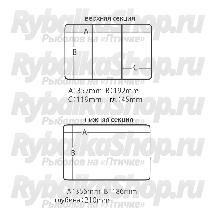 • Внутренние размеры ящика: 356×186×210 мм;