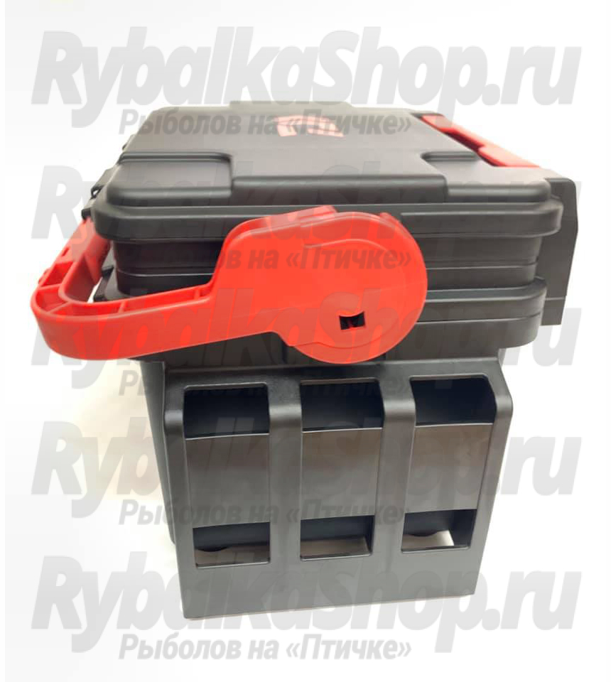 Благодаря внешним креплениям для аксессуаров каждый рыболов может «подстроить» его под свои нужды. Например закрепить держатель удилища. Внутри ящика есть очень удобный сдвижной лоток, который можно положить рыболовные принадлежности, и они будут всегда в «быстром доступе».