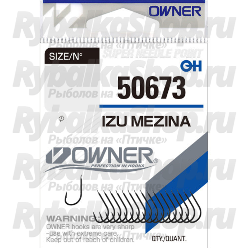 Owner Izu Mezina 50673 – серия одинарных крючков из высокоуглеродистой стали с лопаткой и кованым поддевом. Owner Izu Mezina рекомендуются для ловли крупной сильной рыбы донными и поплавочными снастями на объемные насадки. Izu Mezina имеют классический загиб, цевье нормальной длины, защитное покрытие черного цвета. Острейшее жало с небольшим загибом в сторону гарантирует эффективную подсечку и удержание клюнувшей рыбы.