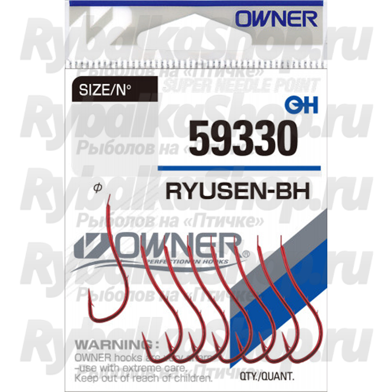 Крючки Owner Ryusen-BH red 59330 — характеризуются круглым загибом, удлиненным, слегка изогнутым внутрь цевьем и двумя дополнительными бородками на нем. Идеально подходят для насаживания приманок животного происхождения, особенно хороши при использовании пучка опарышей.