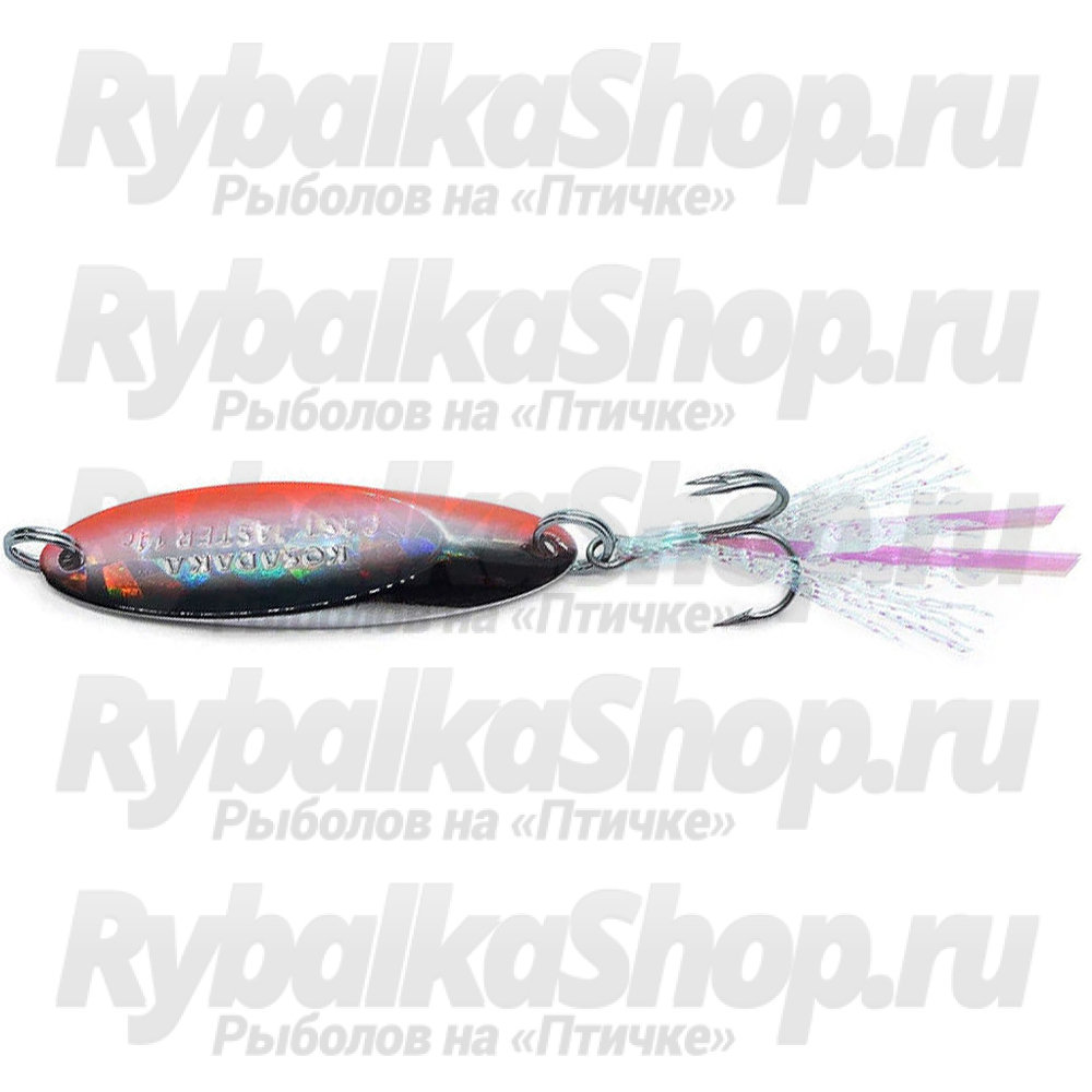 Блесна Kosadaka Castmaster оснащена тройником Mustad c оперением из перламутрового люрекса с блестками. Обычно в таком формате делают вабики для жереха, но и здесь использование опушки очень уместно – она стабилизирует работу блесны, делает падение на паузе более спокойным, равномерным.
