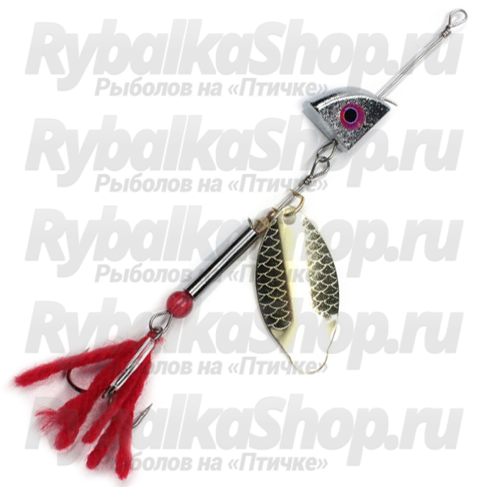 Namazu Al-Strasa - это линейка увесистых переднеогруженных блесен. Такая конструкция позволяет лепестку вращаться даже на свободном падении. Передний груз напоминает голову рыбки. Для визуального сходства на нем есть глаз со светящейся пленкой. Такая деталь может послужить дополнительным раздражающим фактором для рыбы. Лепесток вытянутый со сложным изгибом. Будет вращаться на медленных и быстрых проводках, не собьется на течении. Создаст мощные возмущения среды и блики, которые приманят потенциальную добычу издали. Сердечник - трубочка - длинный, способствует увеличению дистанции заброса и стабилизации блесны Namazu Al-Strasa при проводке. В нижней части есть цветной шарик, который может послужить точкой атаки. Тройник замаскирован нитями пряжи. Колебания такой "юбочки" вносят "изюминку" в игру, поддразнивают рыбу. Подойдут вращалки для охоты на зубастую щуку и крупных окуней