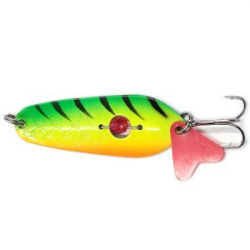 Приманка Namazu One Eye дополнена несколькими интересными конструктивными решениями. Во-первых, на заводном кольце крепится подвижный элемент, который имитирует хвост. Во-вторых, пластина дополнена яркой бусиной. Эта деталь служит раздражителем для хищника, провоцируя его на атаку. Поверхность пластины покрыта рифлением, которое имитирует чешую. Реалистичный объемный глаз добавляет сходства с настоящим «обедом» хищника. Покрытие может быть выполнено в серебристом цвете, золотистом, либо с имитацией окраса настоящей рыбки.