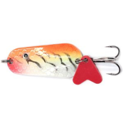Пластина у блесны Namazu Squama толстая, потому массивная. Приманки дальнобойные и позволяют облавливать глубокие места. Среди потенциальной добычи, кроме популярных окуня и щуки, - жерех, крупные лососевые, берш. Лицевая сторона у данной модели покрыта фигурным рифлением, которое воспроизводит чешую. При блестящем окрасе оно способствует бликам. На кольце рядом с тройником закреплен небольшой лепесток. Такая яркая деталь вносит "изюминку" в игру и провоцирует хищника наброситься именно на крючок.