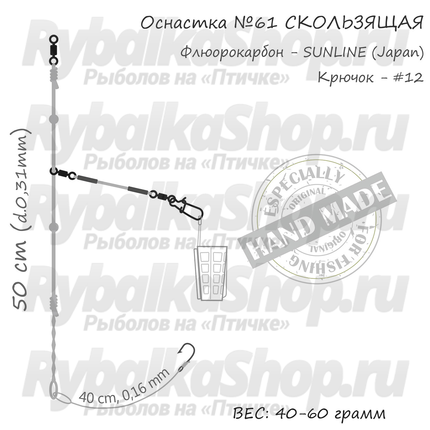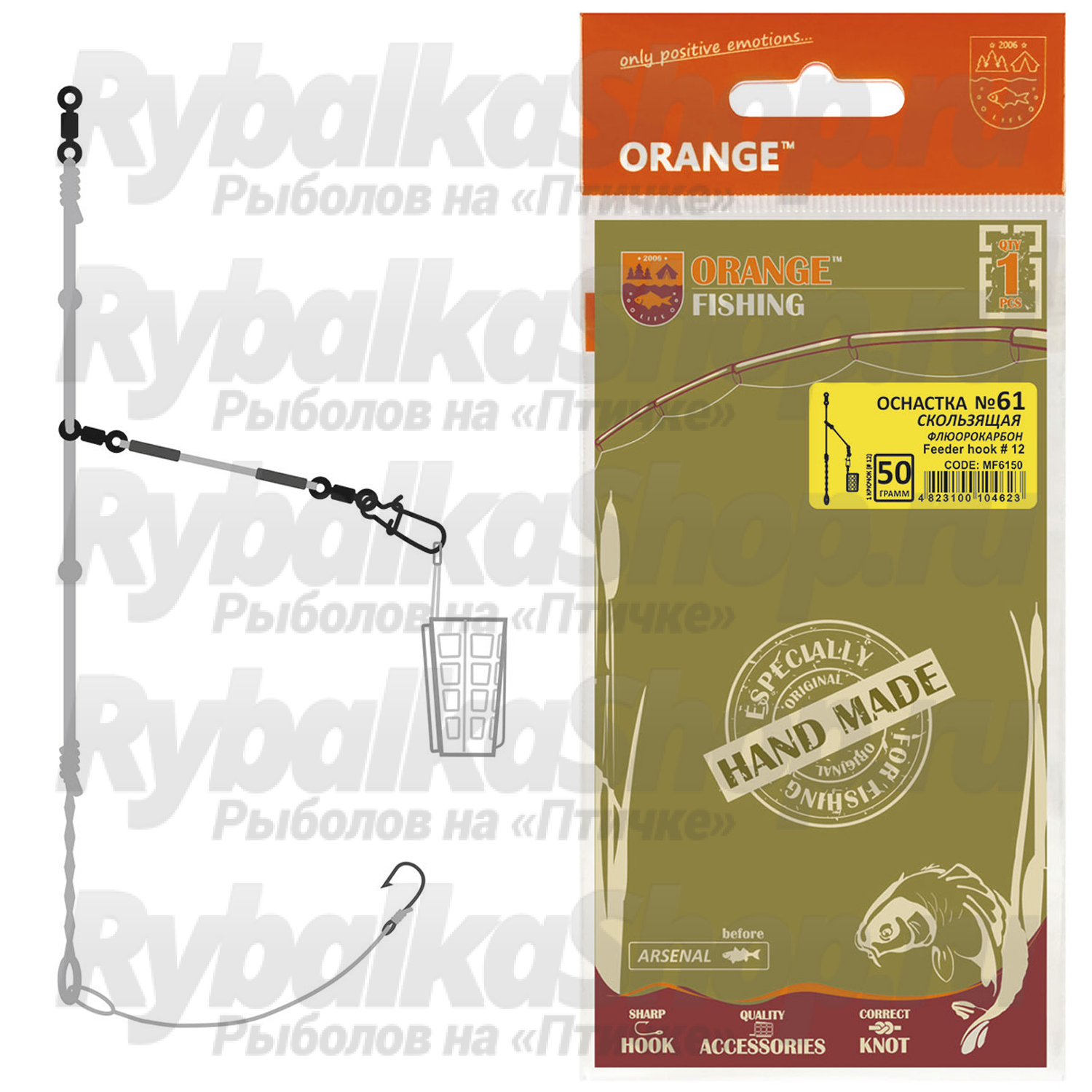 Оснастка Orange #61 – оснастка “скользящая” на 1 крючок, флюрокарбон. Изготовлена из высококачественных комплектующих: кормушка “feeder cage distance“, флюорокарбон SUNLINE (Japan), крючок ORANGE Feeder. Фидерная кормушка очень вместительна, позволяет использовать прикормочные смеси крупной фракции, пеллетс.