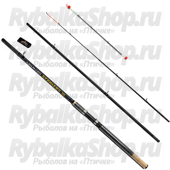 Namazu Strikers - композитное фидерное удилище. Колена соединяются "комель в хлыст". Кольца SiC, установленные на ножках с тремя точками крепления, есть возможность применения плетёных шнуров. В комплекте 3 стеклопластиковых хлыстика различной жесткости. Классический катушкодержатель с нижней гайкой, рукоятка прямая, комбинированная (пробка + EVA). Поставляется в нейлоновом чехле.