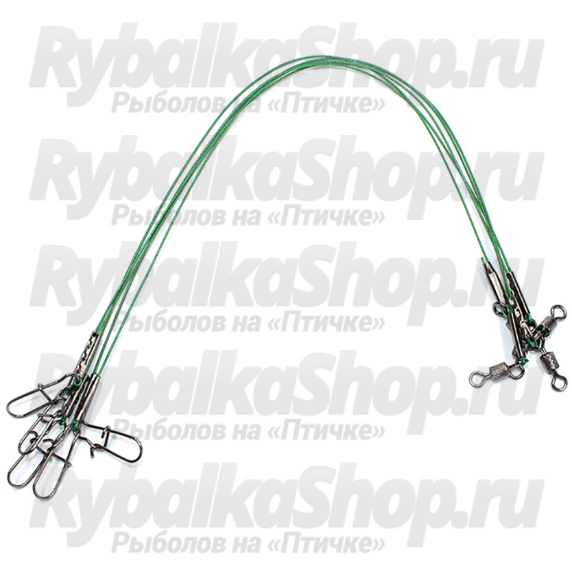 Поводок стальной NAMAZU Leader 1х7 Nylon Coated Green, d-0,45 мм, L-20 см, test- 23 кг (уп. 5 шт.)