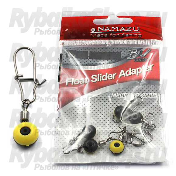 Крепеж для скользящего поплавка Namazu Float Slider Adapter является наиболее распространенным вариантом адаптера для скользящего крепления поплавков. На втулке для крепления поплавка, через которую проходит леска, закреплен вертлюжок с застежкой Nice Snap.