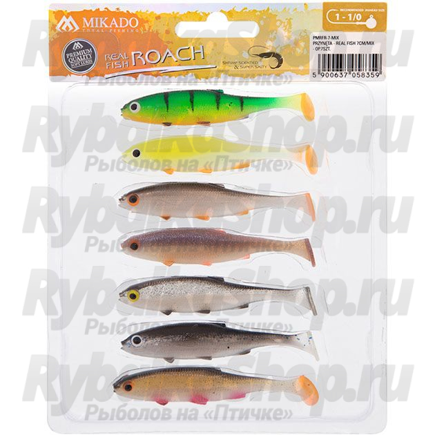 Силиконовая приманка Плотва Mikado Real Fish 7cm цвет ROACH, ассорти. (7шт.) креветка (PMRFR-7-MIX)