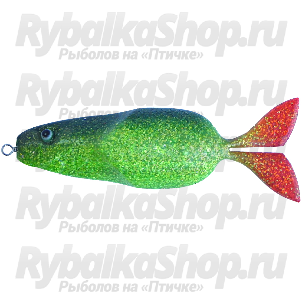 Crazy Spoon выполнена в форме силиконовой рыбки. Ее длина составляет 150 мм, а вес 32 г, что делает ее пригодной для забрасывания с берега на большое расстояние. Это удобно в осеннюю пору, когда щука или судак уходят в глубину водоема.