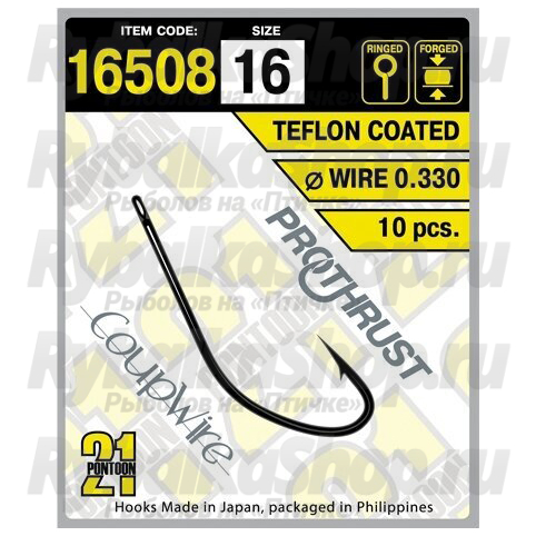 Изготовлены из тонкой стальной проволоки высшего качества (CoupWire) и прошли процесс высокоточной закалки, благодаря которому отлично держат острейшую заточку (ProThrust). Крючки Pontoon21 16508 ProtPoint Hooks долго не тупятся, что позволяет использовать даже самые нежные насадки. Они обладают необходимой упругостью, чтобы при сохранении прочности, не разгибаться и не ломаться на больших нагрузках.