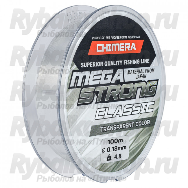 Chimera Megastrong Classic Transparent Color 100m – это классический, то есть фундаментальный и основной вариант нейлоновой лески. Бесцветный или прозрачный. Так что если вы приверженец «старой школы» и точно знаете, что для ваших условий ловли ничего кроме прозрачной лески быть не может, значит, компания Химера сделала все правильно.