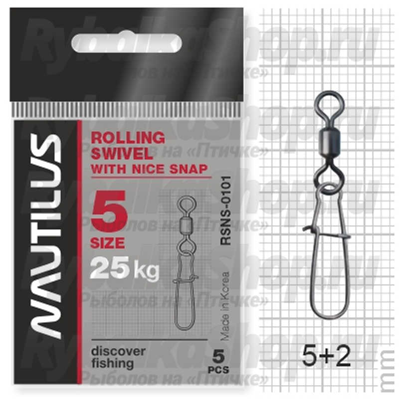Вертлюг Nautilus с застежкой Rolling Swivel 0101 with Nice Snap size # 5 тест 25кг