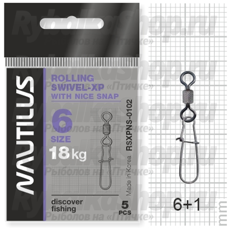 Вертлюг Nautilus с застежкой Rolling Swivel 0102 with Nice Snap size # 6 тест 18кг