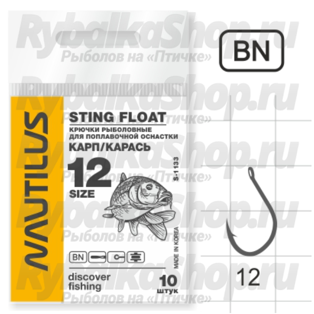Крючок Nautilus Sting Float Карп/карась S-1133BN №12