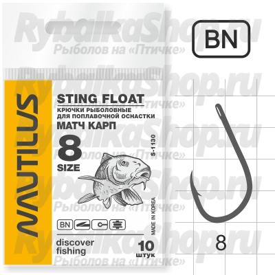 Крючок Nautilus Sting Float Матч карп S-1130BN № 8