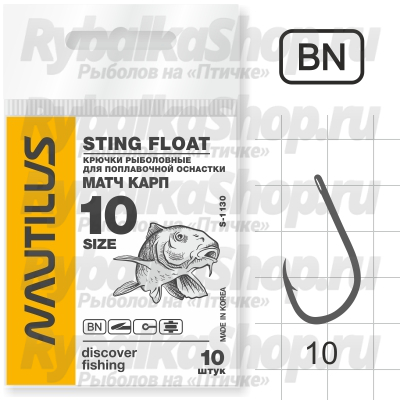 Крючок Nautilus Sting Float Матч карп S-1130BN №10