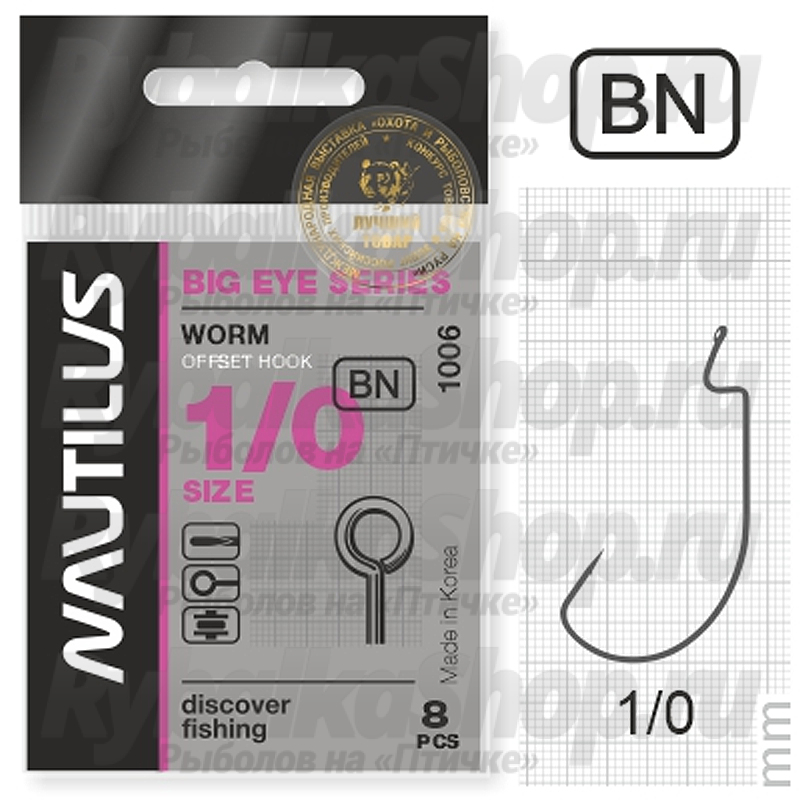 Крючок офсетный Nautilus Offset Big Eye Series Worm 1006 №1/0
