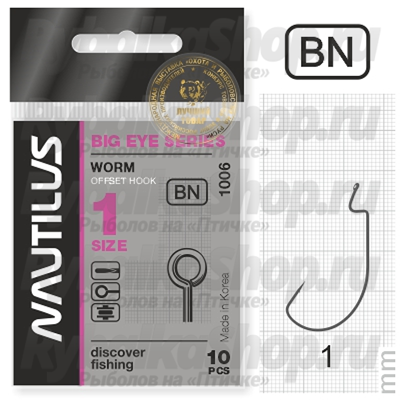 Крючок офсетный Nautilus Offset Big Eye Series Worm 1006 №1