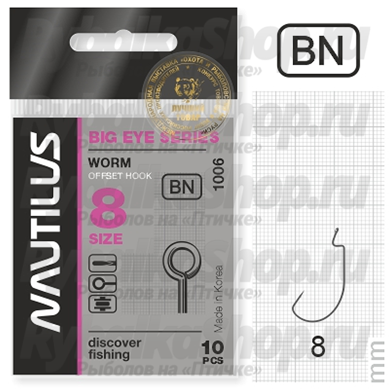 Крючок офсетный Nautilus Offset Big Eye Series Worm 1006 № 8