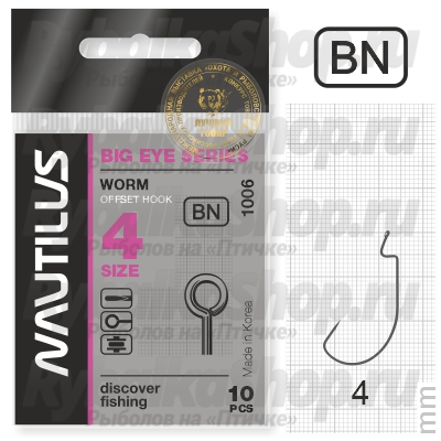 Крючок офсетный Nautilus Offset Big Eye Series Worm 1006 № 4
