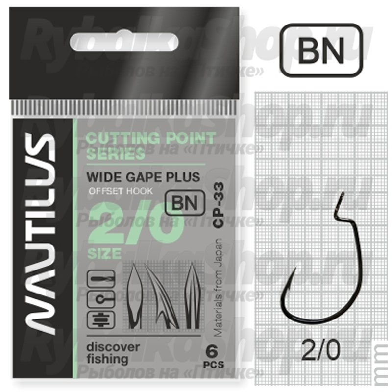 Крючок офсетный Nautilus Offset Cutting Point series Wide Gape Plus CP-33 BC. Мощный крючок, с глубоким поддевом, подходящий для крупных, широкотелых приманок. Жало крючка заточено по технологии Cutting Point, что делает его очень острым, и позволяет оставаться таким очень долгое время.