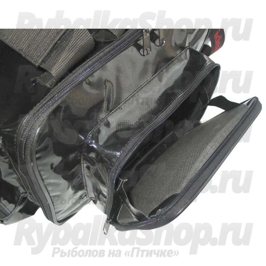 Большое отделение с боковым открытием (В235 х Ш315 х Г235) для габаритных коробок с рыболовными снастями, приманками и прочим. Например, в это отделение отлично вмещаются 5 (пять!) коробок fisherbox 310 (310x230x40) или 4 (четыре) коробки fisherbox 310B (310x230x50). На клапане отделения с внутренней стороны есть плоский карман-сетка.