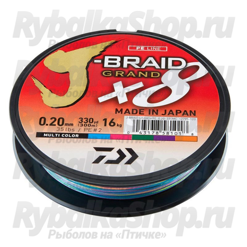 Шнуры Daiwa J-Braid Grand X8E 300m MultiColor изготавливают в Японии. Они идеально подходят для ловли как в пресной, так и в соленой воде.