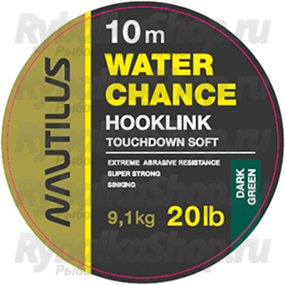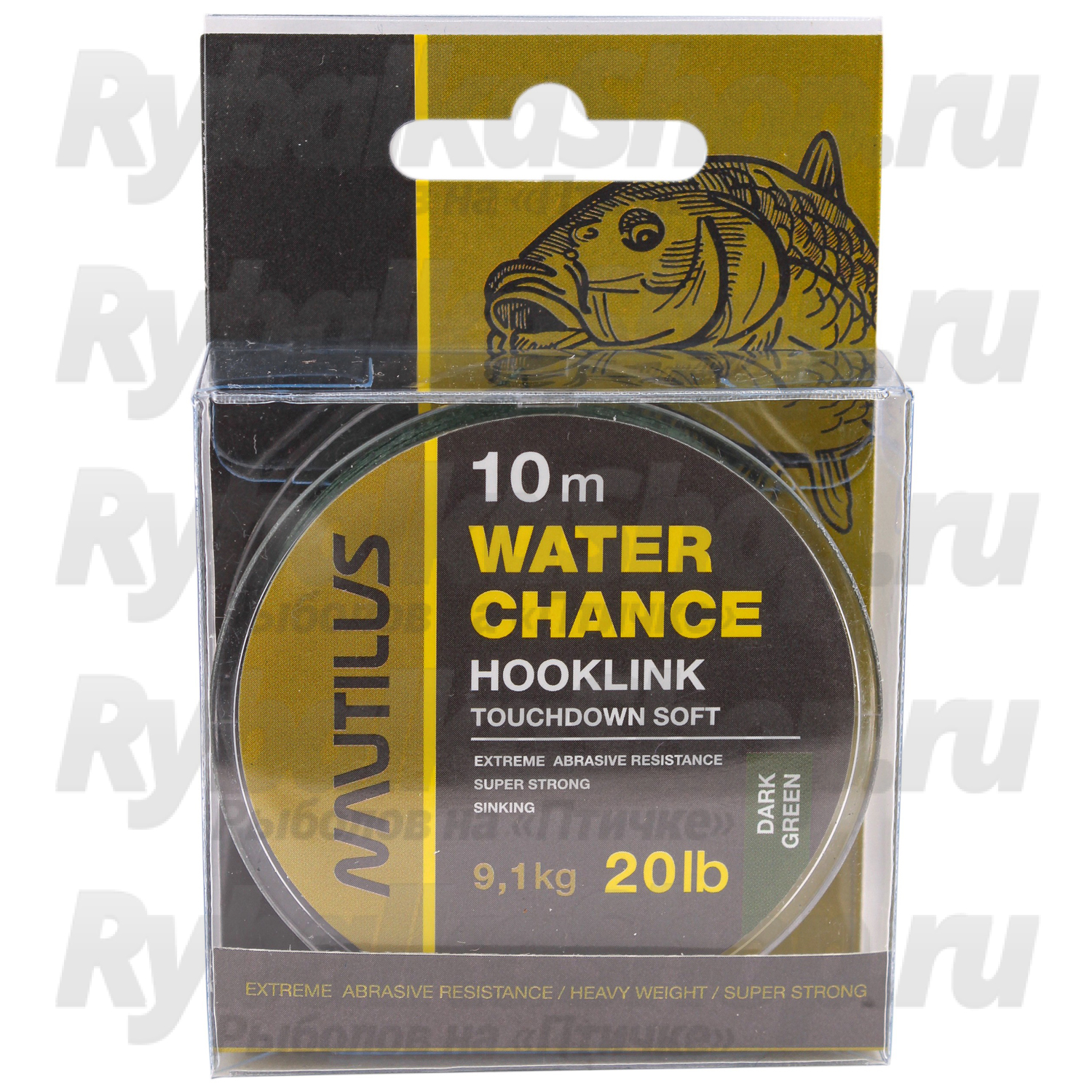 Поводковый материал Nautilus Water Chance 10м, обладающий нейтральной плавучестью, что дает возможность использовать его на самых запрессованных водоемах.
