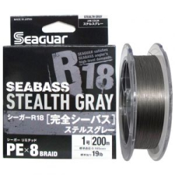 Kureha Seaguar R-18 Seabass Stealth Gray X8 - новая линейка плетеных шнуров от известной компании Kureha-Seaguar. R-18 SeaBass - восьмижильный плетеный шнур. Тонкий, скользкий, гладкий и мягкий, он обеспечивает максимальную дальность заброса и превосходную чувствительность. Шнур имеет близкое к круглому сечение. По сравнению с обычными восьмижильными PE- шнурами значительно повышена износостойкость, при этом увеличена разрывная нагрузка на 30%