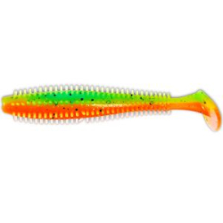 Тело виброхвоста Boroda Baits Yakudza 85 mm прижато с боков, а на конце расположена внушительная пяточка, что в совокупности наделяет приманку более размашистыми колебаниями хвостовой части с элементами роллинга (покачивание приманки с боку на бок). Ребрышки на теле также добавляют Yakudza заметности в воде благодаря шумовому эффекту. А внутрь тела интегрирован монолитный сердечник в виде капли. Нужен он для того, чтобы при оснащении приманки двойником или джиг-головкой, тело ее не разрывалось и приманка служила дольше.