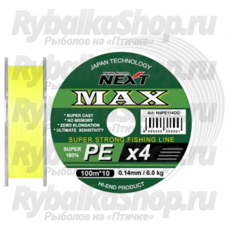Описание Next MAX PEx4 1000m (10*100m соединенные) желтый-флюо