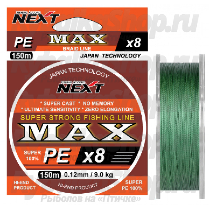 NEXT Fishing Accord MAX PEx8 - это современный и очень прочный восьми жильный плетеный шнур, изготовленный с применением современных технологий и материалов. Шнур MAX PEx8 - очень круглый и дальнобойный и подходит для большинства видов современных рыбалок, будь то спиннингом или при ловле фидером.