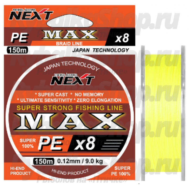 NEXT Fishing Accord MAX PEx8 - это современный и очень прочный восьми жильный плетеный шнур, изготовленный с применением современных технологий и материалов. Шнур MAX PEx8 - очень круглый и дальнобойный и подходит для большинства видов современных рыбалок, будь то спиннингом или при ловле фидером.