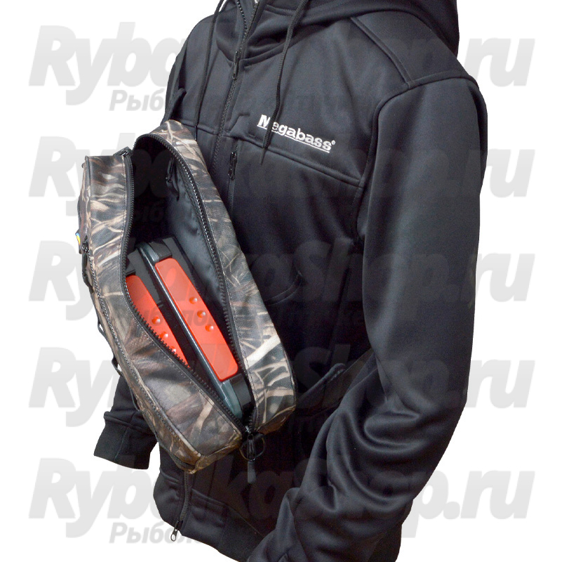 Сумка Megabass Rapid Bag создана для береговой рыбалки. Система креплений позволяет повесить сумку через одно плечо и зафиксировать на поясе. Ее можно переворачивать за спину и вперед при необходимости. Пошита модель из плотного долговечного материала. В большом внутреннем отделении поместятся коробки с приманками. Есть два внутренних сетчатых кармашка для необходимых мелочей и один закрытый внешний. Снаружи также предусмотрена лента с петлями для инструментов, есть D-образные пластиковые скобы. Та часть сумки, что соприкасается с телом, сделана из сетчатого материала для лучшей вентиляции.