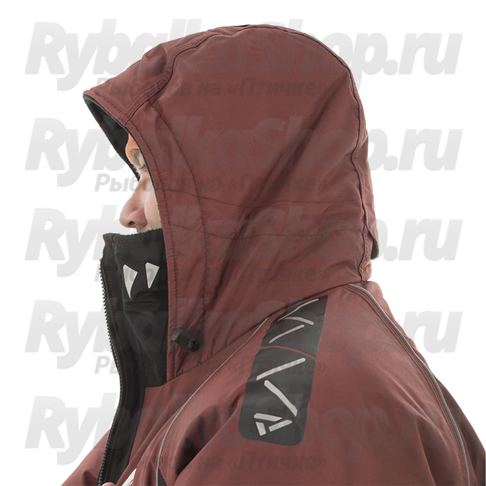 Высокий воротник куртки защищает от ветра. Удобный глубокий капюшон с жестким ветрозащитным козырьком. Глубокие утепленные карманы на куртке специально созданы для размещения всего необходимого для рыбалки и согрева рук. К куртке пристегивается дополнительный карман на разъемной молнии с пластиковой коробкой для приманок размером 22*12*2см. На рукавах есть специальные крепления для спасалок (идут в комплекте с костюмом) для оперативного использования в случае падения со льда в воду. Неопреновые манжеты обеспечат максимальный комфорт рукам при соприкосновении с водой. Перфорация ткани на спинке костюма и рукавах способствует быстрому вытеканию накопившейся воды в куртке, что облегчает выход из воды при случайном падении. Внутри куртки на подкладе - влагостойкий карман для обеспечения сохранности гаджетов.