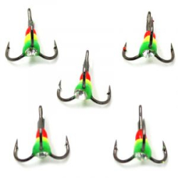 Крючок-тройник светофор Namazu предназначен для зимней ловли. Прочные, острозаточенные, с широким округлым крепежным ушком. Надежно удержат клюнувшую добычу. Так как в холодное время года хищник вялый и пассивный, нужны дополнительные провокационные элементы, чтобы раздразнить его. Потому каждый тройник Namazu оснащен цветной каплей и камнем, который сверкает при попадании света. Такой крючок можно использовать для того, чтобы повысить привлекательность балансира, виба или иной приманки для подледной ловли.