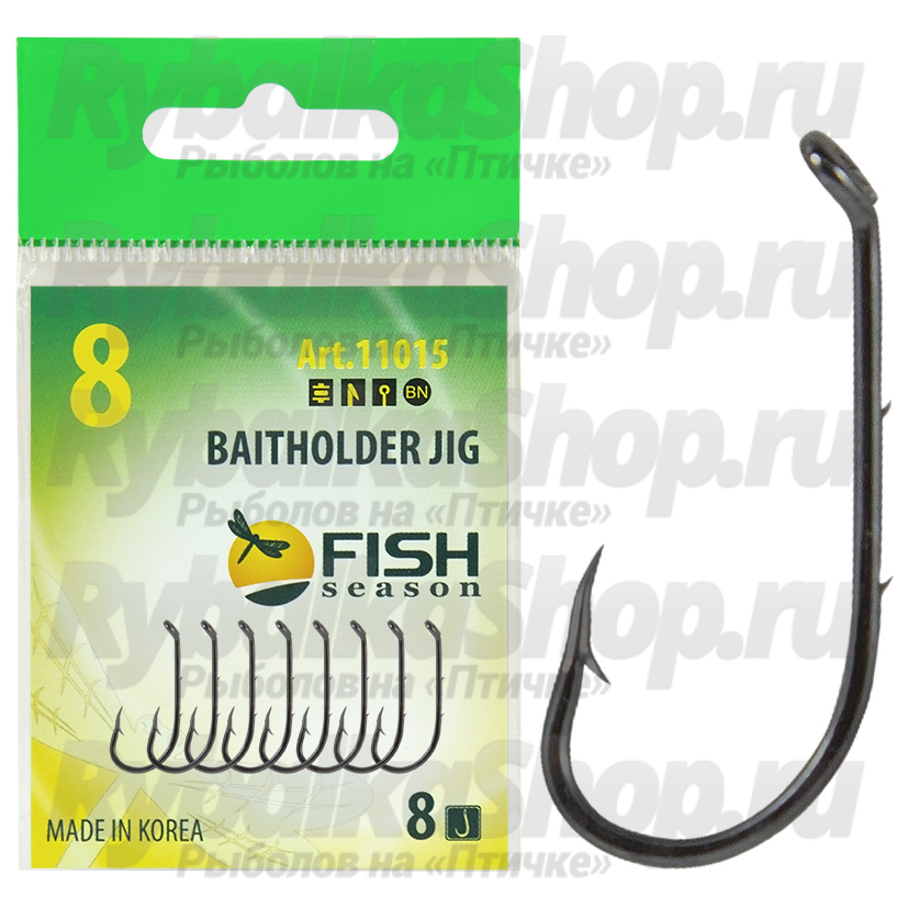 Крючки Fish Season Baitholder Jig BN (11015) больших размеров для трофейной рыбы. Насечки на цевье позволяют хорошо фиксировать животные насадки (червь, ручейник, ракушка).