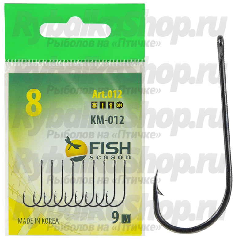 Крючки классической формы Fish Season KM012 BN (012) выполнены из тонкой проволоки черного цвета, с колечком и удлинённым цевьём. Эта серия успешно иcпользуетcя при ловле на мотыля и некрупного червяка. Модель так же популярна и для литья мормышек. Цвет: BN.