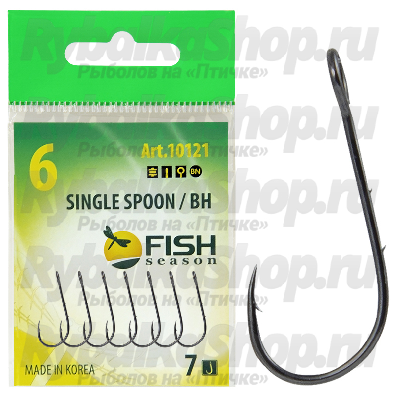 Одинарные крючки Fish Season Single Spoon Baitholder BN (10121) имеют дополнительные насечки на цевье для фиксации силиконовых приманок, они лучше всего подойдут для шарнирных соединений джиговых и микроджиговых оснасток. У крючков этой серии удлиненное цевье и жало, полукруглый загиб.