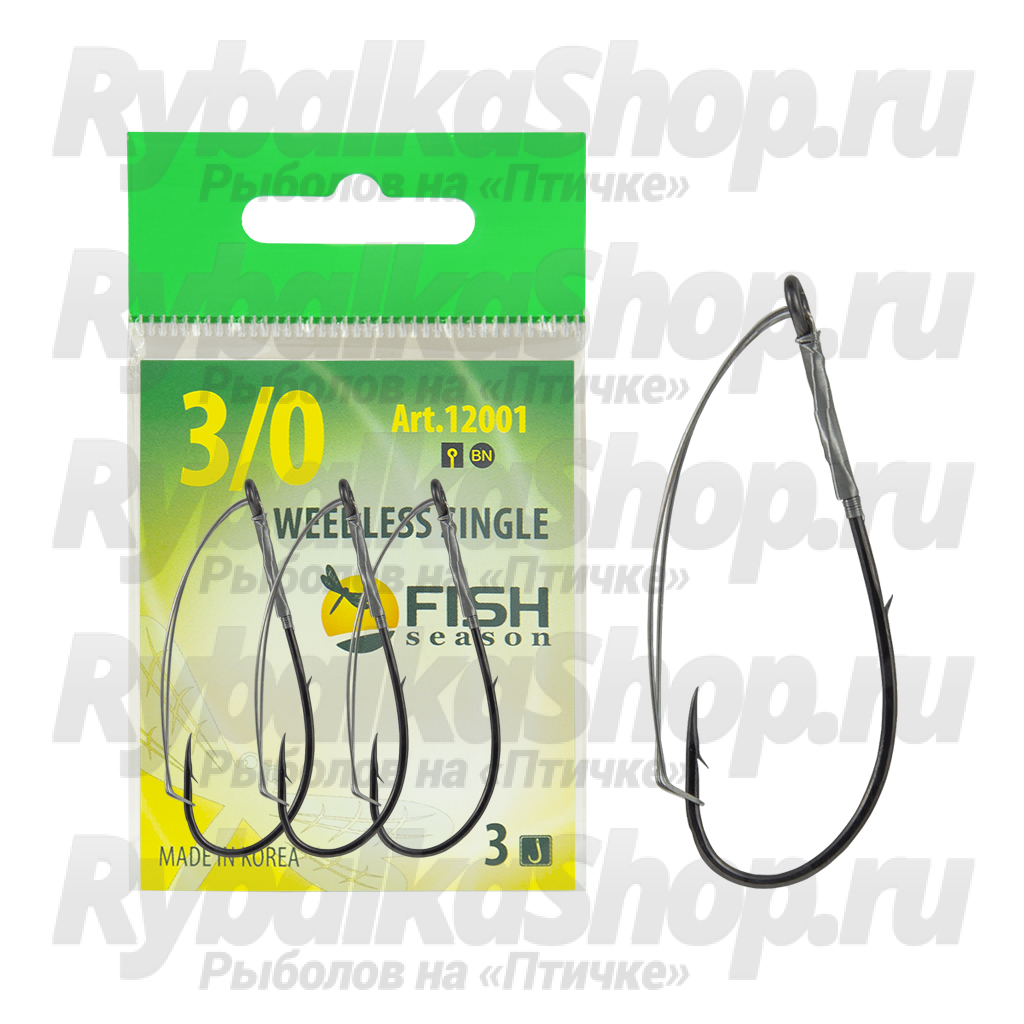 Крючок незацепляйка Fish Season Weedless Single №2/0, (упак. 3 шт)