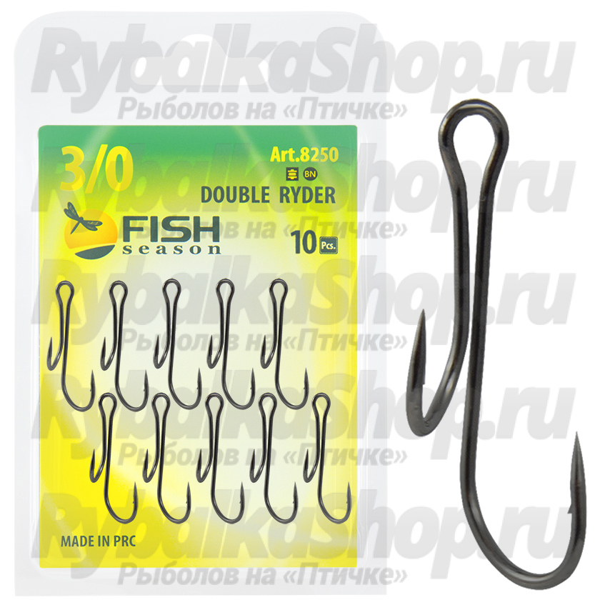 Крючок двойной Fish Season "Живцовый" разноуровневый непаяный, №3/0, покрытие BN (6 шт.)