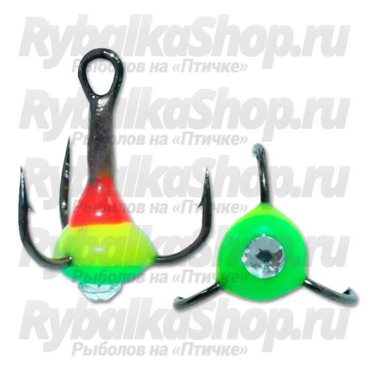 Крючок Тройник "Капля" Vido Craft №14, цвет 33 красно-желто-зеленый+белый страз, VD-092C (BN), 10 шт/уп