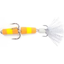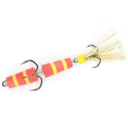 Индекс «Д» в названии обозначает, что второй цвет окраски выполнен в виде двух узких полосок вместо одной широкой. Высококачественная американская нержавеющая сталь с разрывной нагрузкой 15 кг гарантирует надежность соединений даже в экстремальных условиях. Приманка оснащена корейскими тройными крючками, которые имеют специальную заточку, аналогичную Owner, что обеспечивает надежную подсечку и снижает шанс схода трофея. Хвостовая часть выполнена из металлизированного витого люрекса, что придает приманке объемность и является дополнительным провоцирующим фактором для хищника.