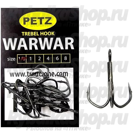 Тройные крючки Petz Warwar Trebel Hook изготовлены из высокоуглеродистой стали и имеют антикоррозийное покрытие. Крючки обладают отличными амортизирующими свойствами и необычайно острой заточкой жала. Такое жало легко проникает в даже самую костистую пасть рыбы.