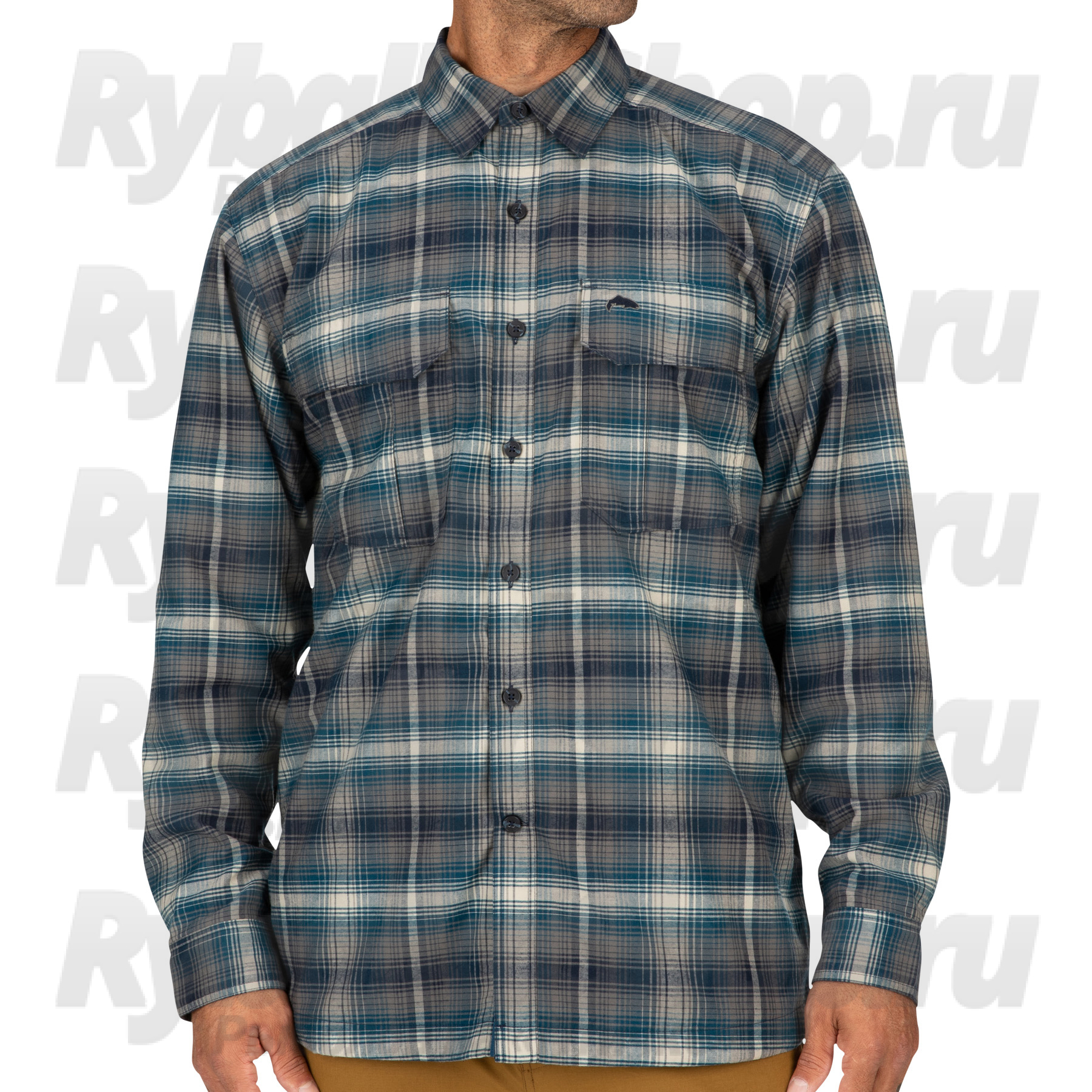 Simms Coldweather LS Shirt, Atlantis Steel Plaid - теплая фланелевая рубашка на флисовой подкладке с двумя нагрудными карманами.