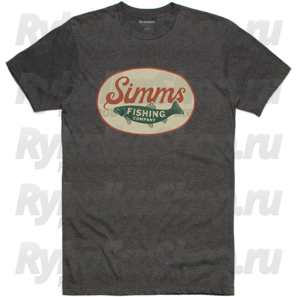 Simms Trout Wander T-Shirt, Charcoal Heather - красивая и практичная футболка для увлечённого рыболова  с фирменным логотипом Simms.