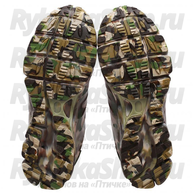 Промежуточная подошва выполнена из EVA - гибкого и легкого материала, обладающего отличной амортизацией и снижающего нагрузку со стопы. Низ подошвы выполнен из резины защищающей от проколов и повышающей износостойкость. Нос и пятка ботинок имеют дополнительную прорезиненную защиту (наплав TPU).