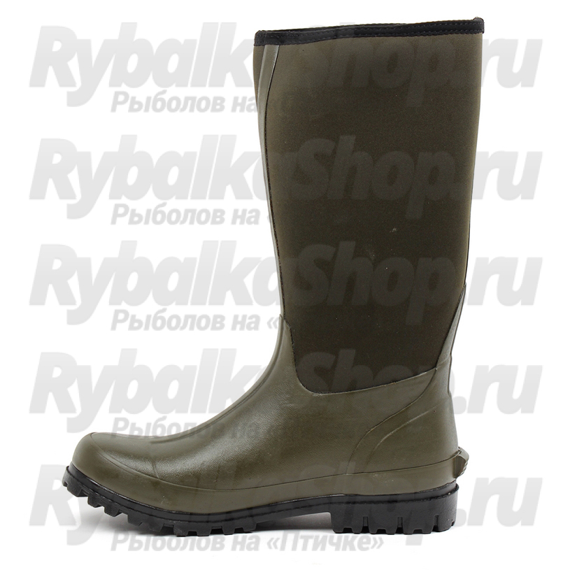 Второй частью верха сапог является сборно-сварочная галоша из природного натурального каучука, которая в совокупности с неопреновым голенищем, отлично защищает от попадания влаги и воды во внутреннее пространство обуви. Неопрен, как чулок, плотно облегает ногу.